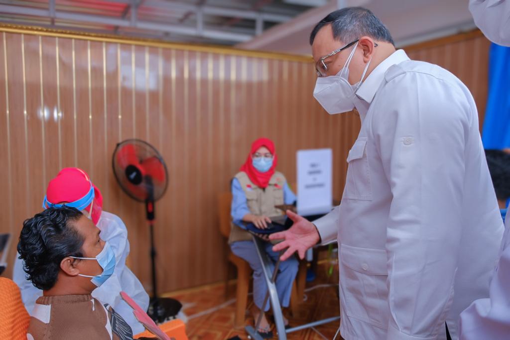 Medical Center (SMC), sekaligus meninjau pelaksanaan vaksinasi gotong royong