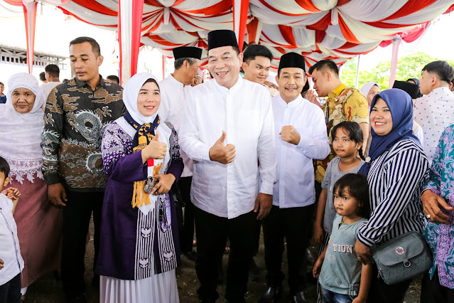 APERO FUBLIC. SEKAYU.- Bupati Musi Banyuasin H M Toha bersama dengan Wakil Bupati Muba Rohman, secara resmi melepas sebanyak 193 calon jamaah haji asal Kabupaten Musi Banyuasin. Pelepasan para jamaah haji dilakukan di Hotel Gambo Residence Sekayu, Sabtu (3/5/2025).